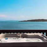 La villa offre una vista sul mare. Questa casa vacanze dispone di un bagno con una vasca idromassaggio, una doccia e una lavatrice.